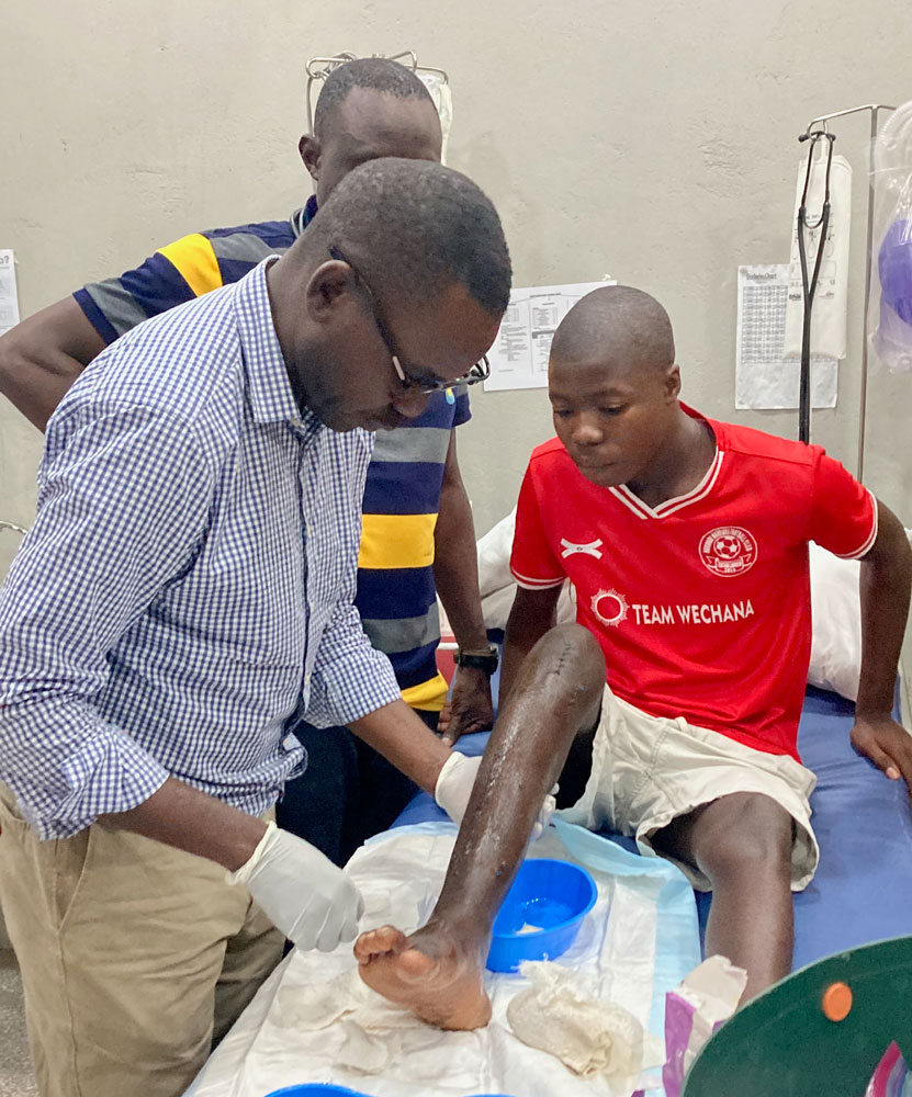 We are often surprised that there are so few medical cases to attend to amongst our children. But when there are, we are painfully aware of the inadequacies of the government hospitals and clinics. Two months ago, James Chiboni, a Grade 9 pupil at Lmapela Cedric's, suffered a combined tibia-fibula fracture during a football match. Treatment at the Chamboli Hospital was unsuccessful, and James feared that he would never walk again. So we appreciated the help of Elinda Steury of the Kafakumba Clinic for arranging internal fixation with metal hardware privately under orthopaedic surgeon Dr Nelson Banda in Ndola. Happily, surgery went well, and James is now convalescing at home. Thanks to those who contribute to our medical fund.